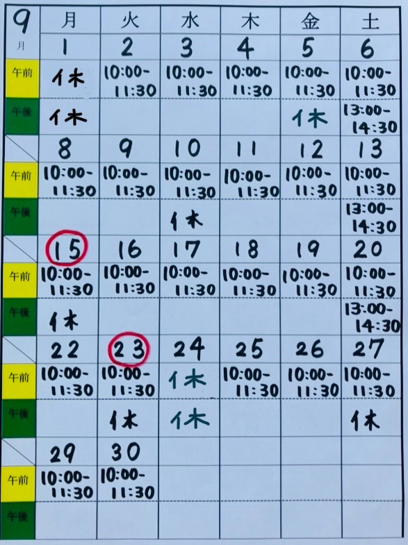 9(火) 残り2名 🚙残り3台