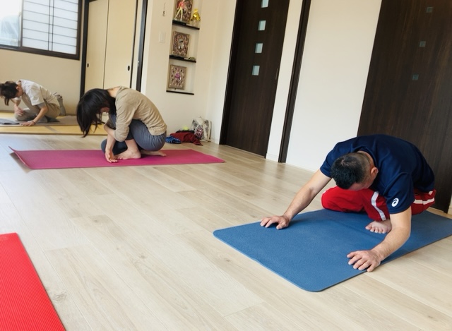 このポーズの前には、肋骨や背骨の動きを柔軟し