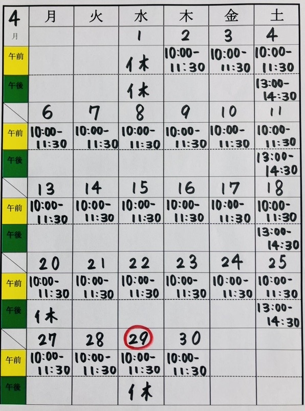 ✿30日(月)~4月4日(土)までのご予約状況✿