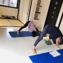 こんにちは。 リノ・スマイルヨガのユミです 今日は、仲良しご夫婦のプライベートレッスン 内ももの筋肉、内転筋は脚を閉じる筋肉 ここが働くことでももの内側からお腹へと力が集まって 軸が安定する レッスンには…