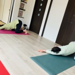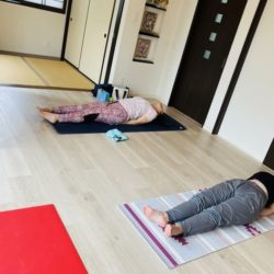 こんにちは。 リノ・スマイルヨガのユミです 魚のポーズが大好きな生徒さんからのリクエストで 今月はシャバアーサナの前に行っています 仰向けの状態で行う後屈ポーズ 胸や首・背中回りのアプローチします ●胸を大きく開いて行うので …