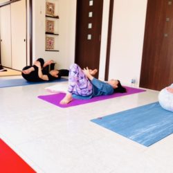 こんにちは。 リノ・スマイルヨガのユミです 前ももから股関節までをほぐす 「スプタビラアーサナ」 ①膝を曲げお尻の横にかかとをもってくる ②肘をつくか余裕があれば背中をつけて寝ていく 4年通ってくれている生徒さん、以…